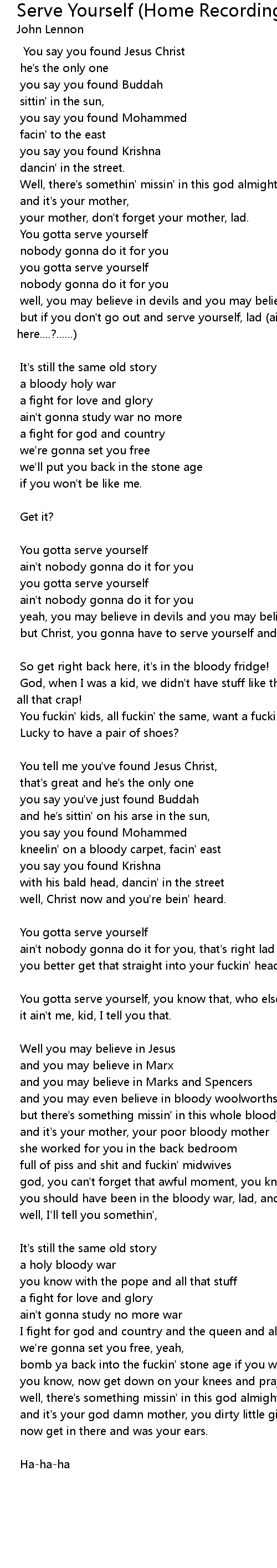 but Christ, you gonna have to serve yourself and that's all there is to it. |