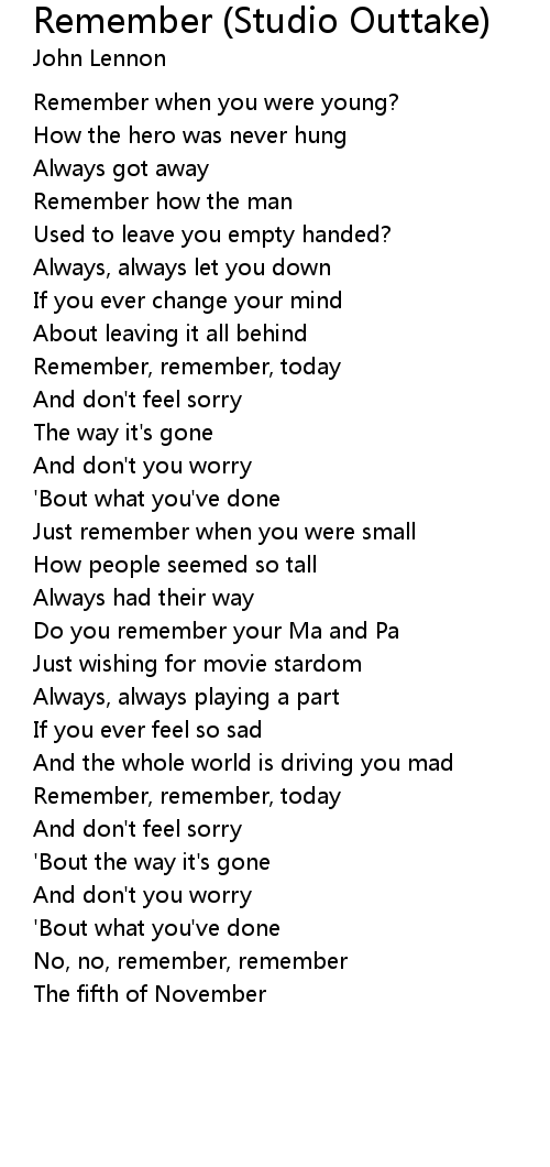 Remember (Studio Outtake) Lyrics
