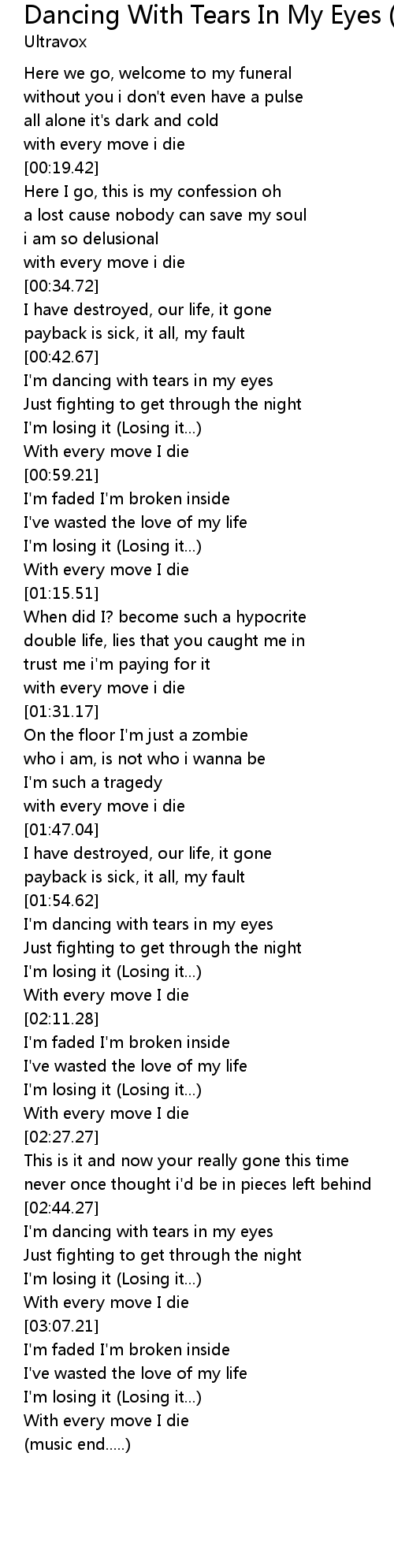 | [00:44.02] | I'm dancing with tears in my eyes |