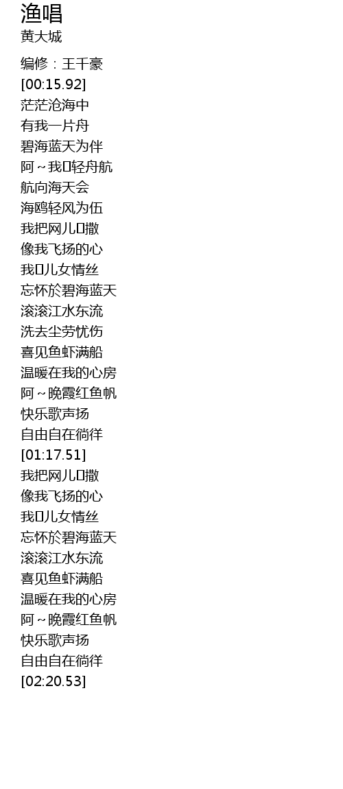 | [01:00.03] | 喜见鱼虾满船 |