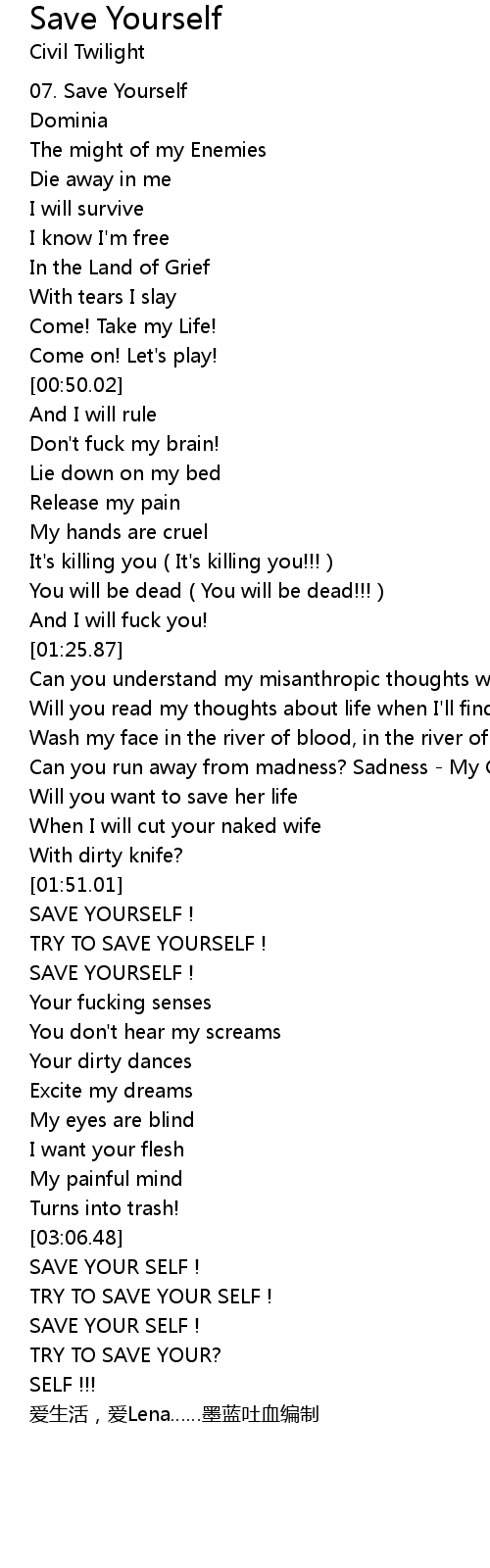 | [03:35.68] | SAVE YOUR SELF ! |