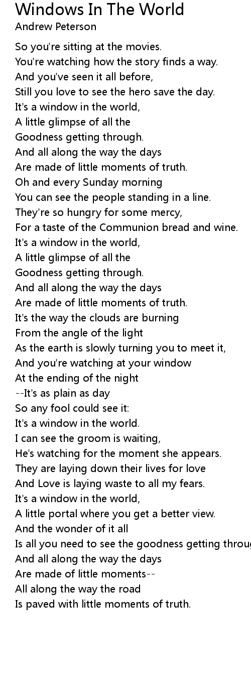 It's a window in the world, |