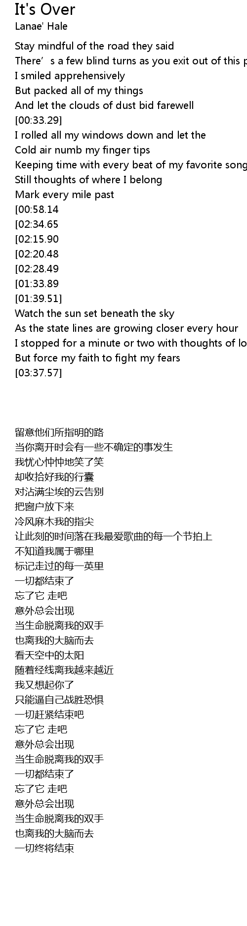 | [03:28.22][02:34.65][02:06.88][01:03.61] | It’s over (3x) |