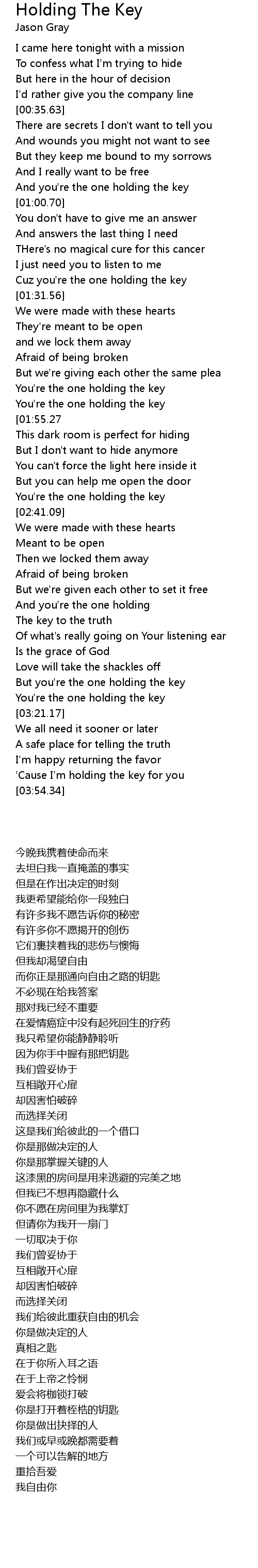 'Cause I'm holding the key for you |