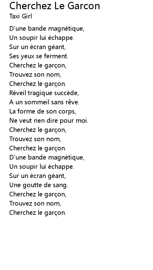 | Cherchez le garçon, | |