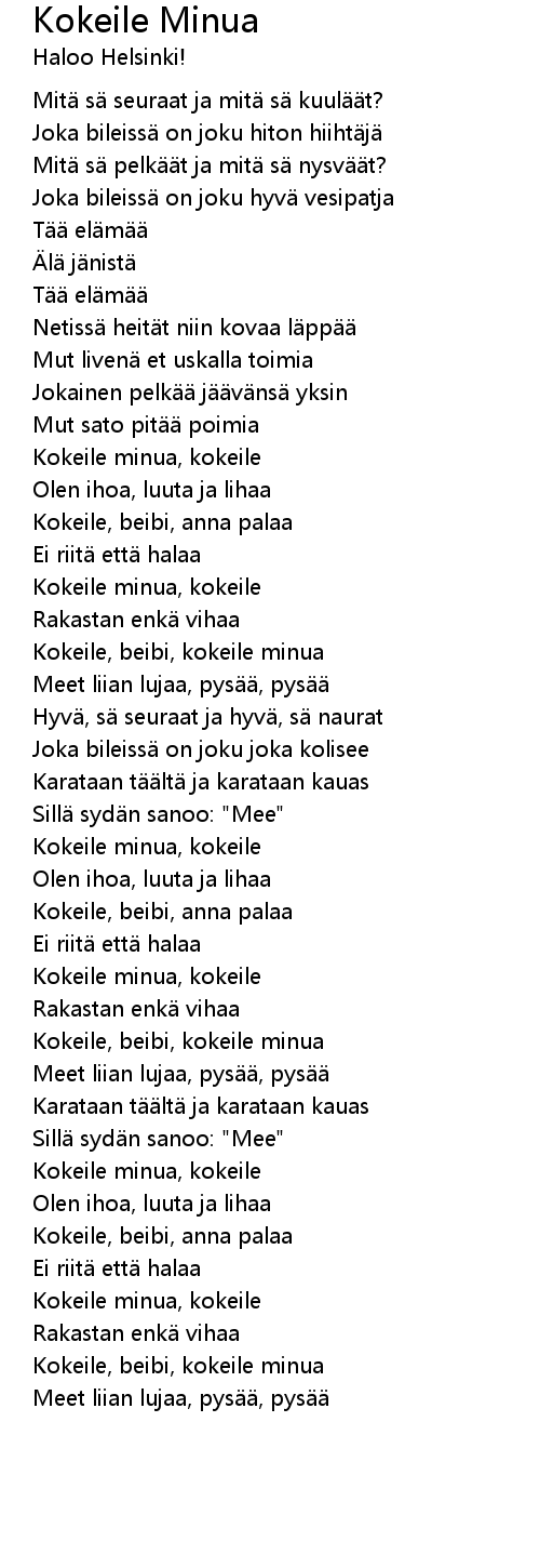 | Mitä sä seuraat ja mitä sä kuuläät? | |