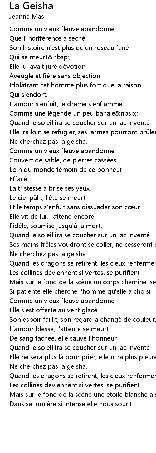 | Ses mains frêles voudront se coller, ne cesseront de prier | |