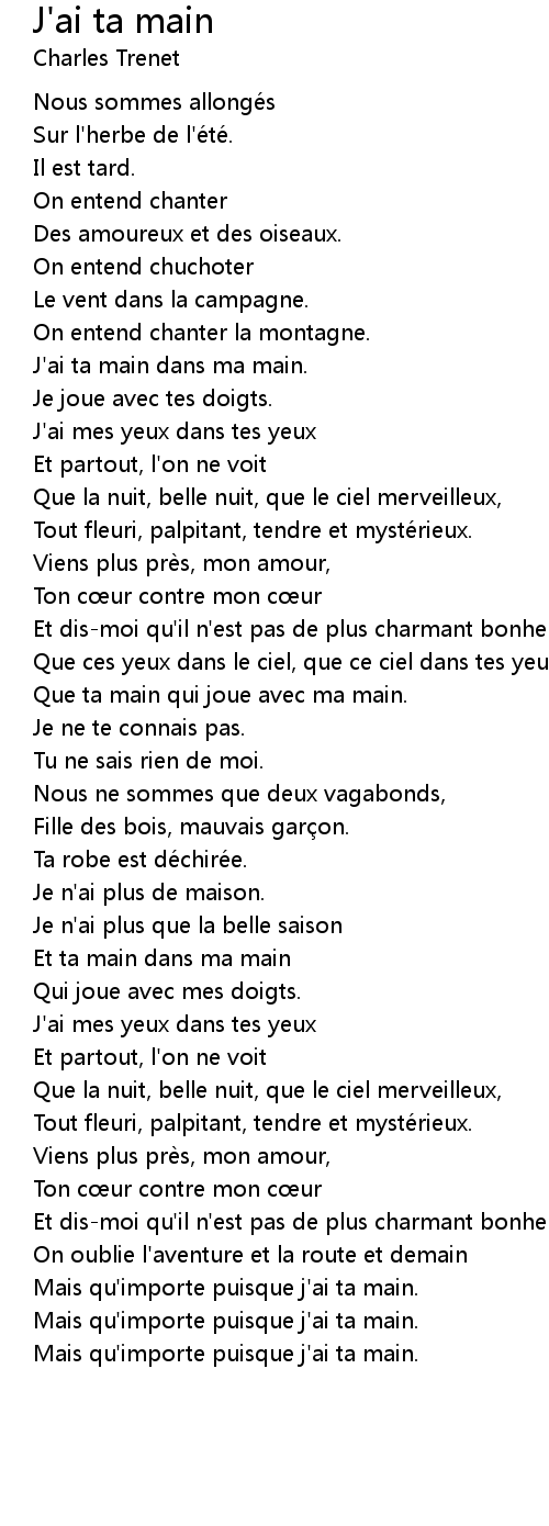 | J' ai ta main dans ma main. | |