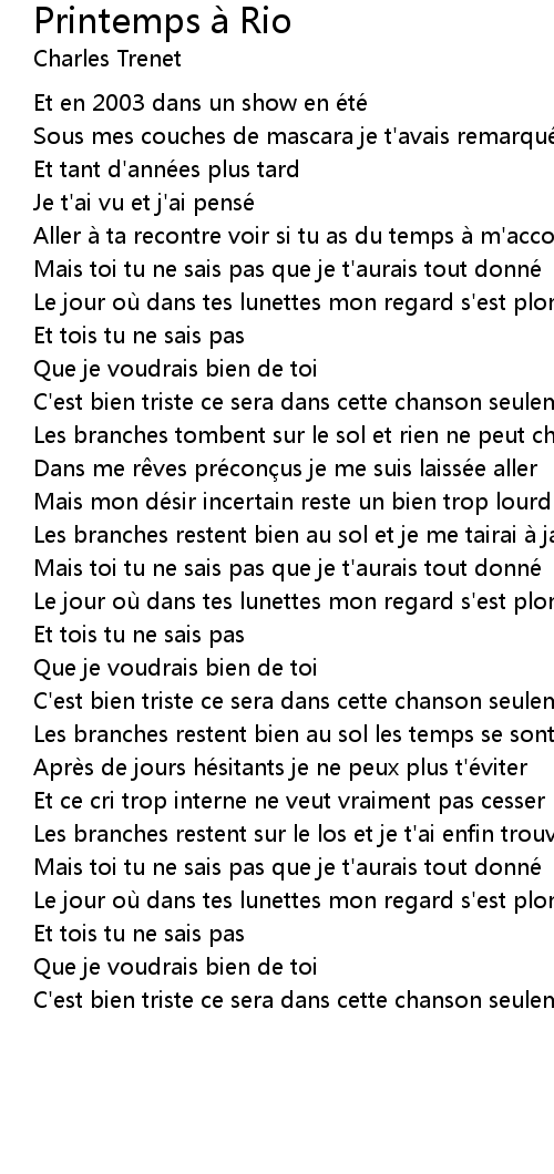 | Song | Printemps à Rio |