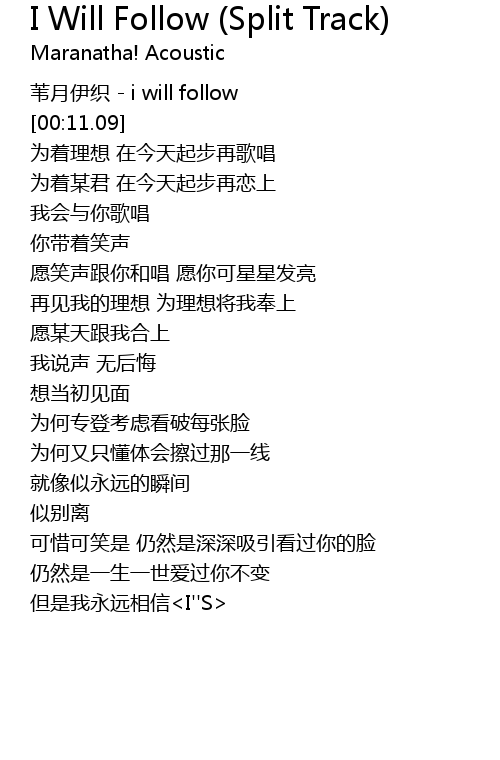 | [00:04.26] | wěi yuè yī zhī i will follow |