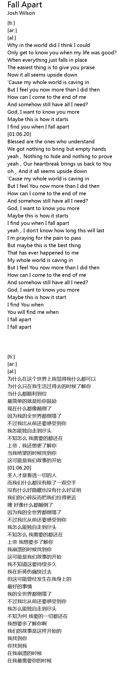 | [01:02.18] | I find you when I fall apart |