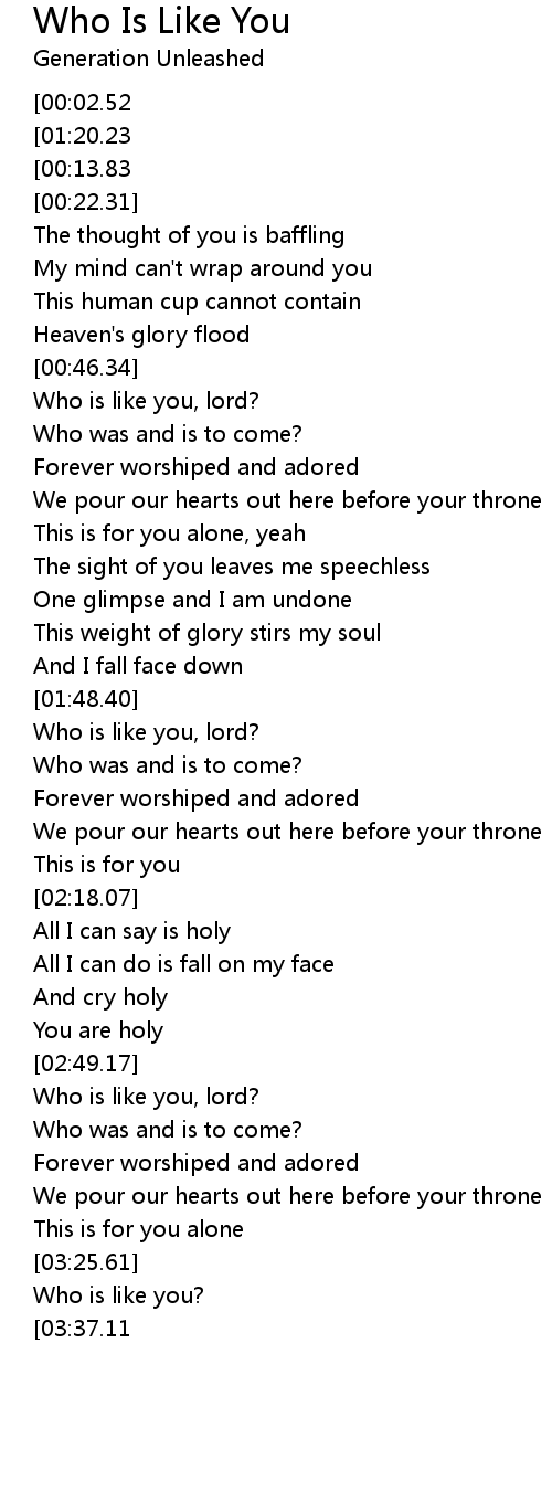 | [00:48.38] | Who is like you, lord? |
