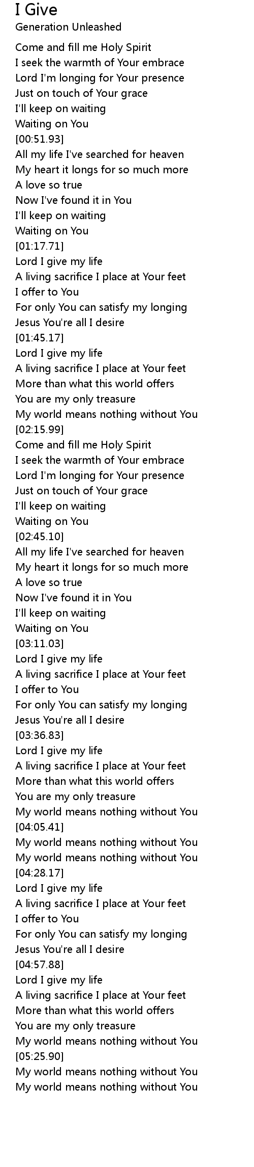Lord I give my life |