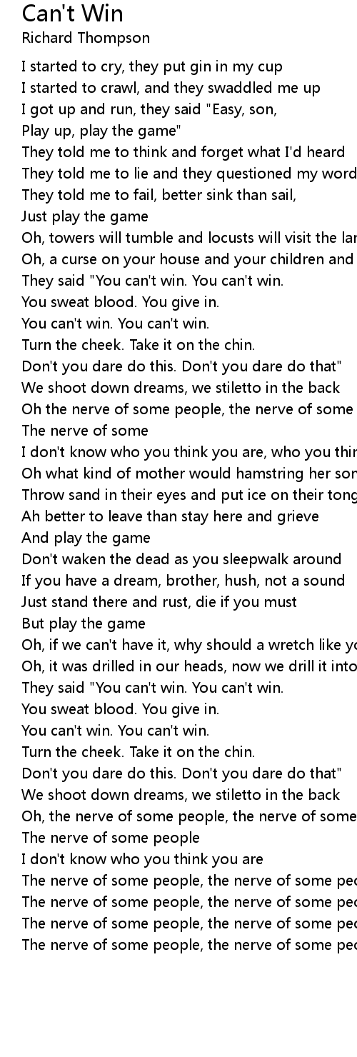They said "You can't win. You can't win. |