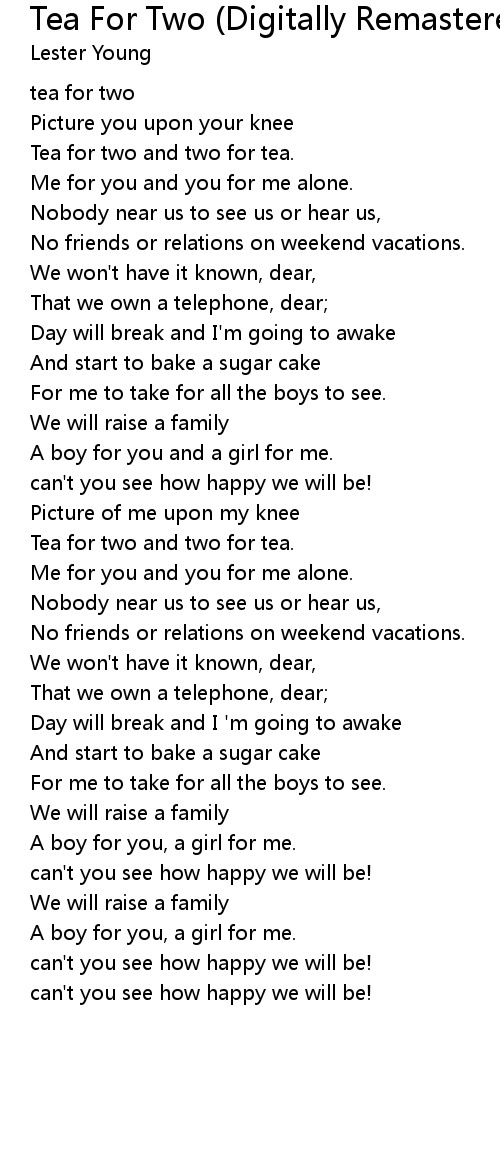 Tea for two and two for tea. |