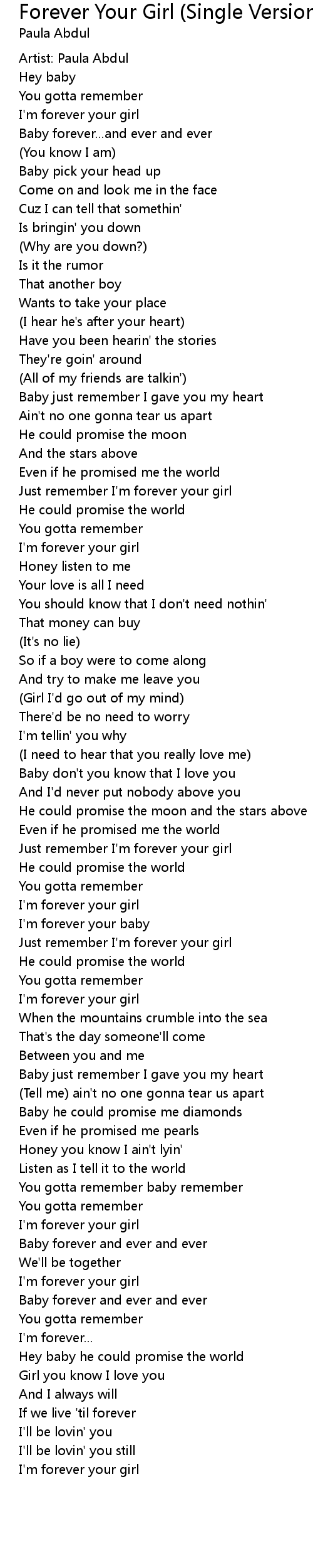 Just remember I'm forever your girl |