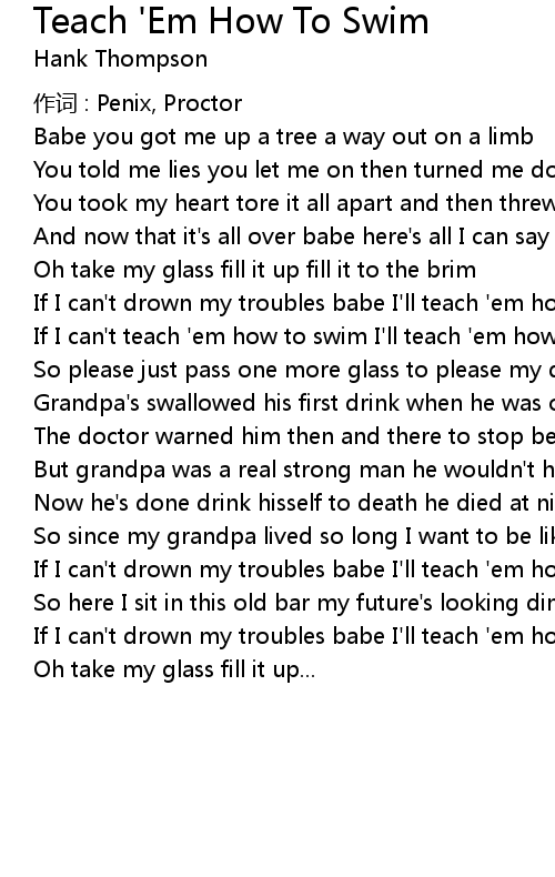 | If I can' t drown my troubles babe I' ll teach ' em how to swim | |