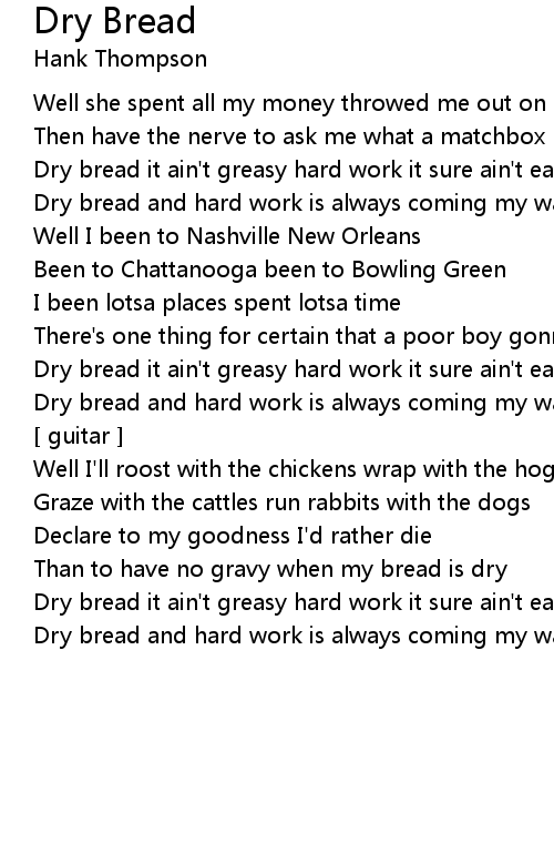 Dry bread it ain't greasy hard work it sure ain't easy |