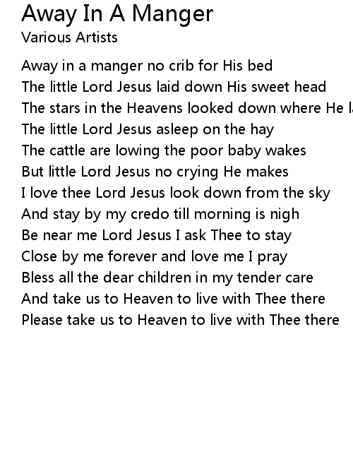 Away in a manger no crib for His bed |