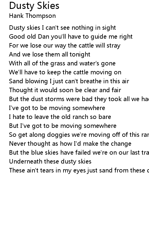 Dusty skies I can't see nothing in sight |