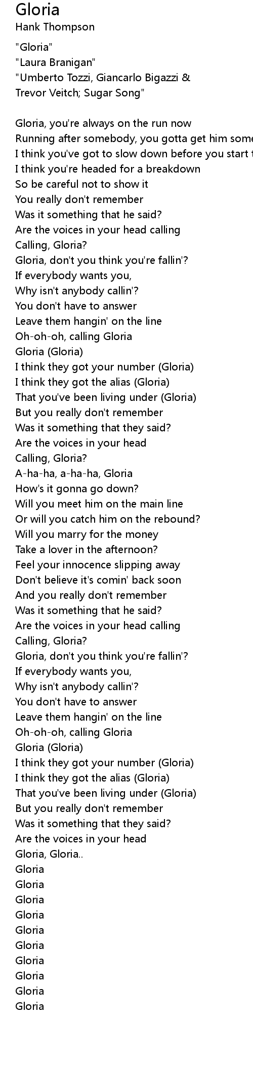 Gloria, don't you think you're fallin'? |