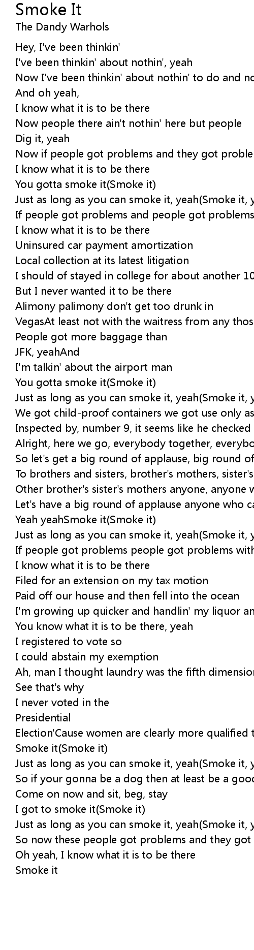 Just as long as you can smoke it, yeah(Smoke it, yeah) |