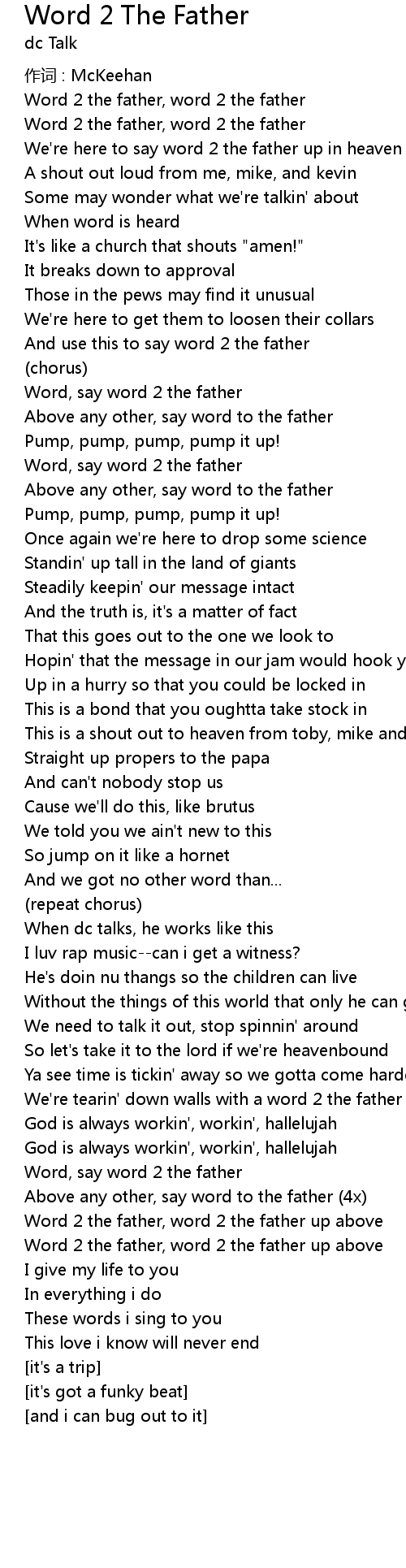 | Word 2 the father, word 2 the father up above | |
