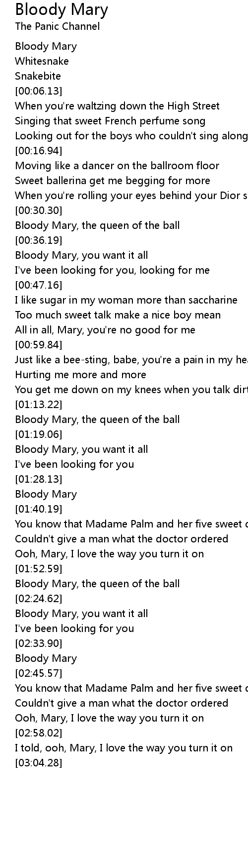 Bloody Mary, you want it all |
