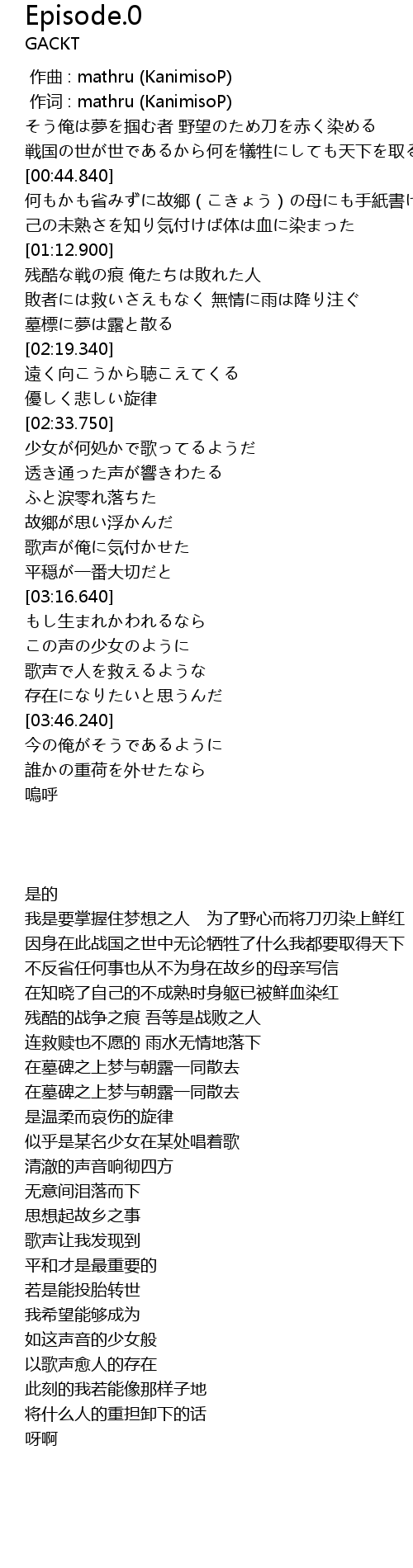 | [00:00.00] | zuo qu : mathru KanimisoP |