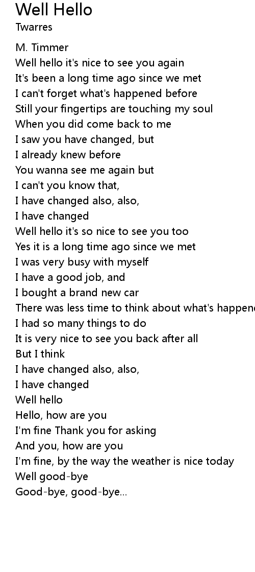 | Well hello it's nice to see you again | |
