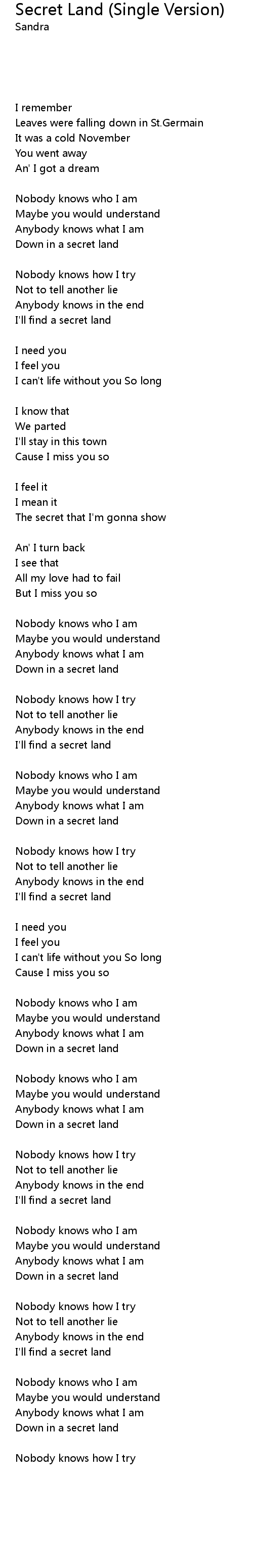 [ti:Secret Land (Single Version)]