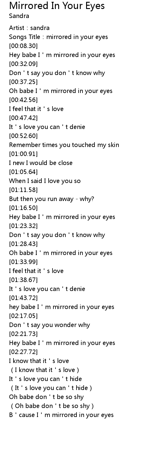 | [02:23.98] | Hey babe I m mirrored in your eyes |