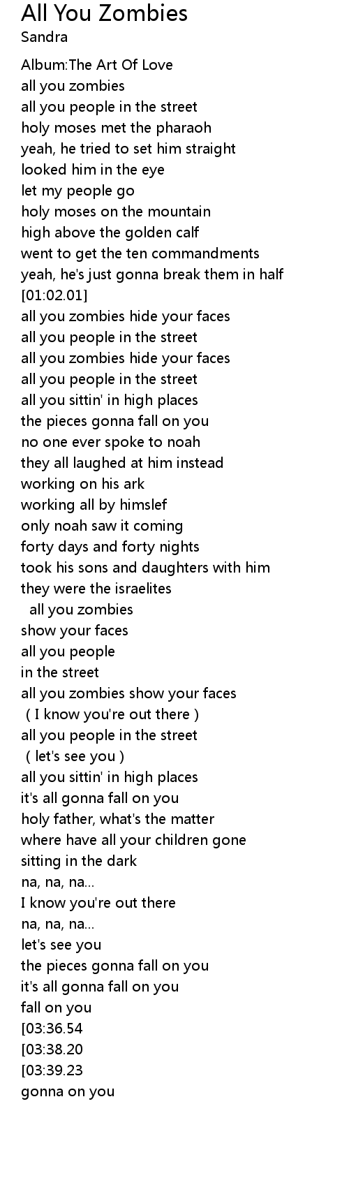 | [03:45.17][03:36.54] | all you zombies show your faces |