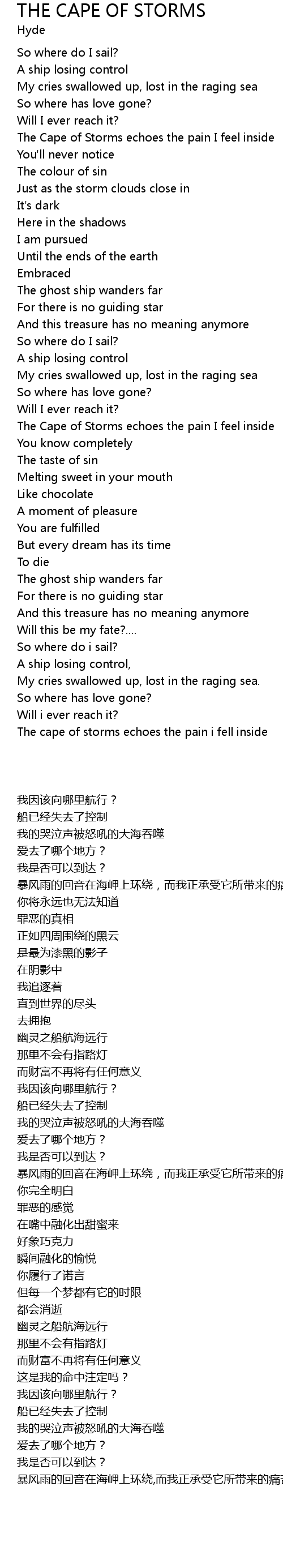 | [02:39.22] | The Cape of Storms echoes the pain I feel inside |