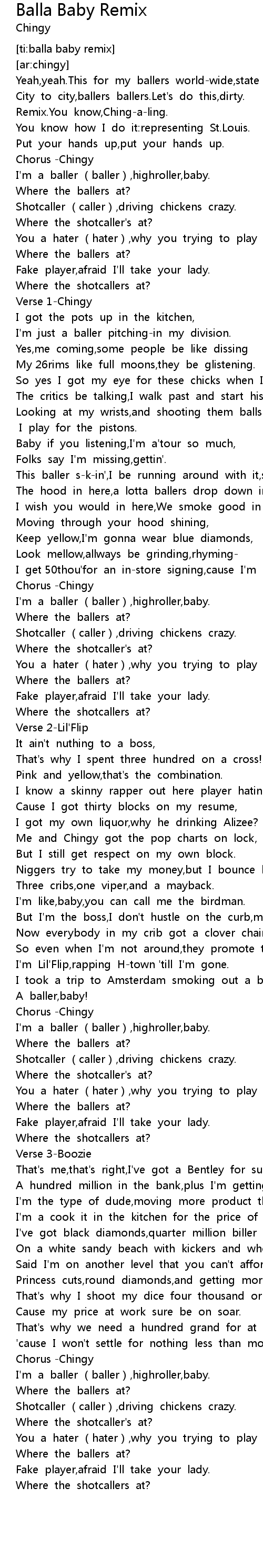 | [00:22.424] | I' m a baller baller, highroller, baby. |