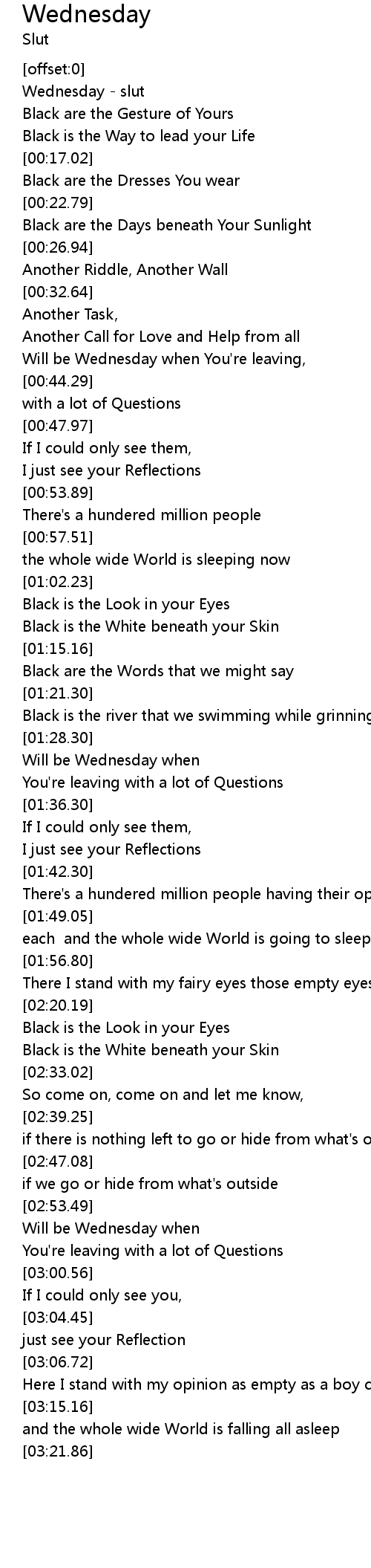| [00:41.59] | Will be Wednesday when You're leaving, |