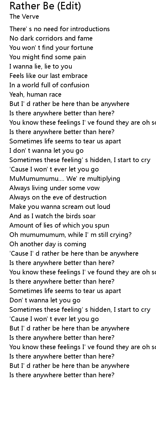 | [01:04.49] | But I' d rather be here than be anywhere |