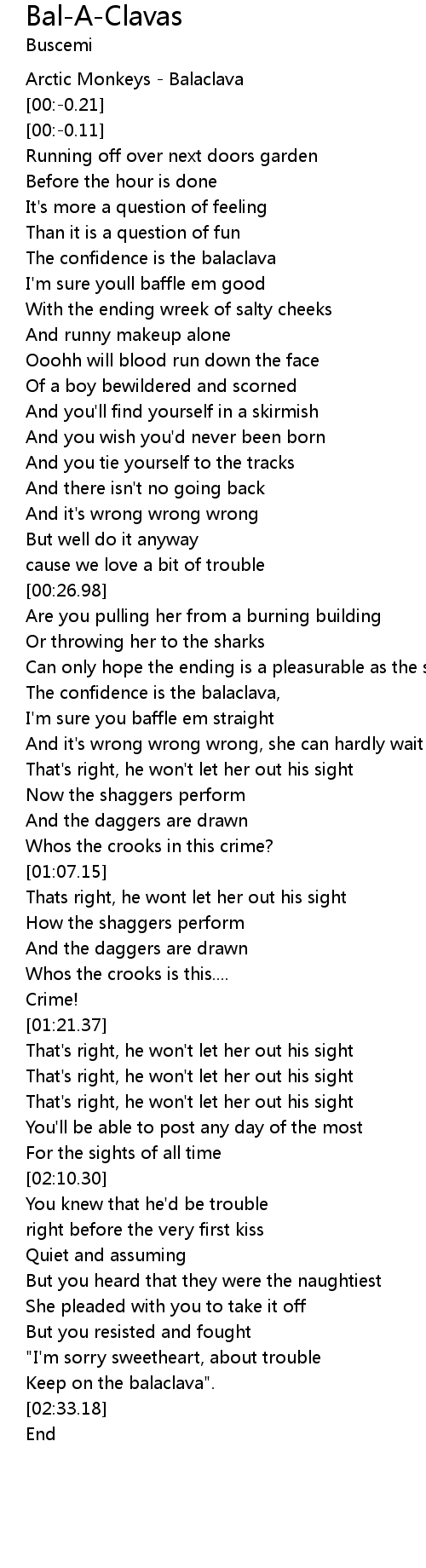| [02:31.03] | Keep on the balaclava". |