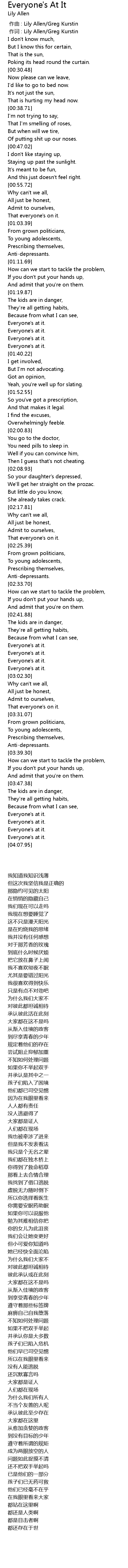| [00:01.00] | 作词 : Lily Allen/Greg Kurstin |