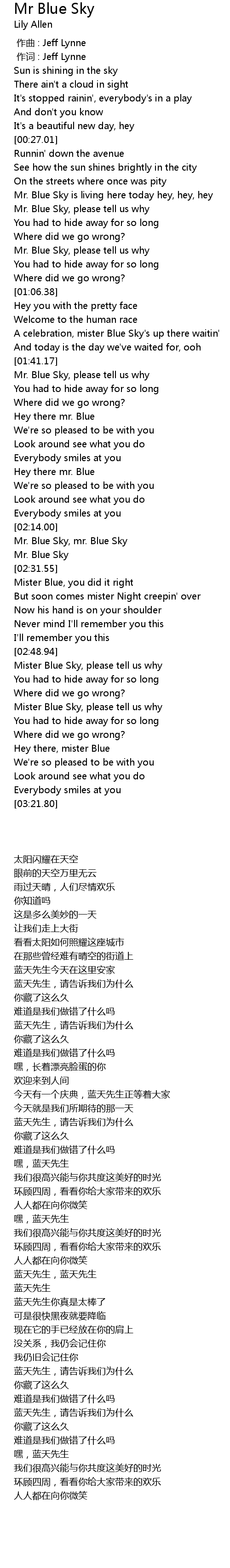| [02:17.25] | Mr. Blue Sky, mr. Blue Sky |