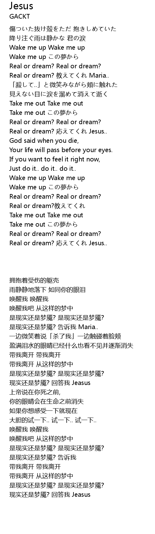 | [02:51.720] | Real or dream? 応えてくれ Jesus.. |