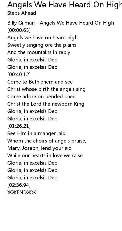 | [00:00.00] | Billy Gilman - Angels We Have Heard On High |