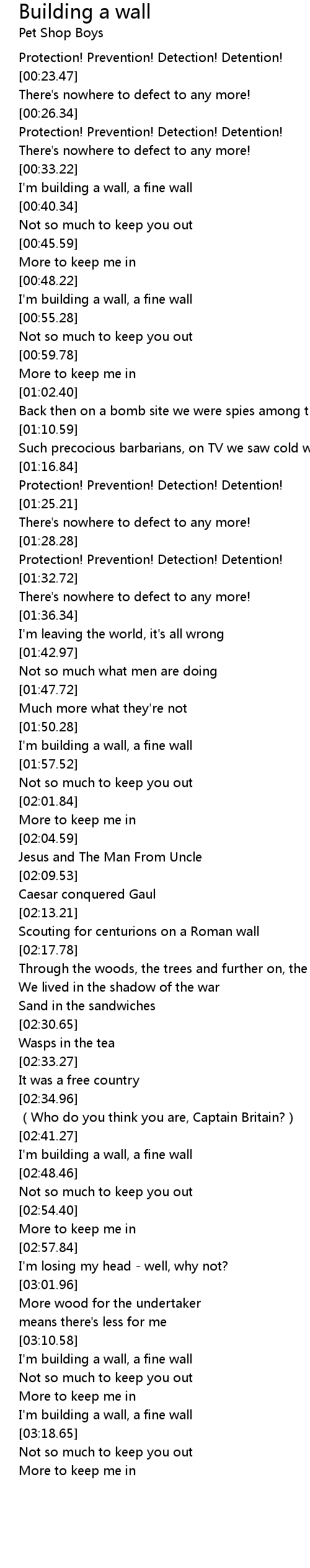 | [03:16.02] | I'm building a wall, a fine wall |
