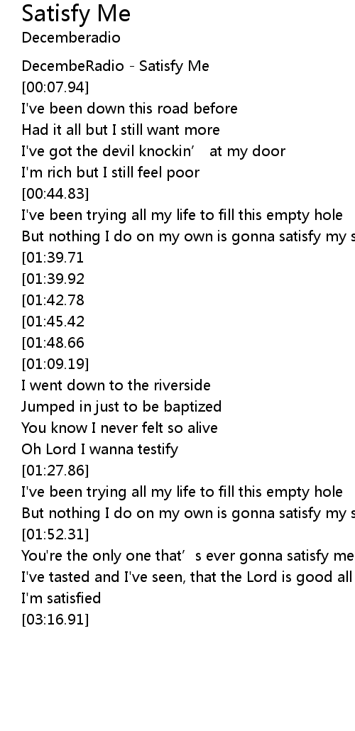 | [00:01.36] | DecembeRadio Satisfy Me |