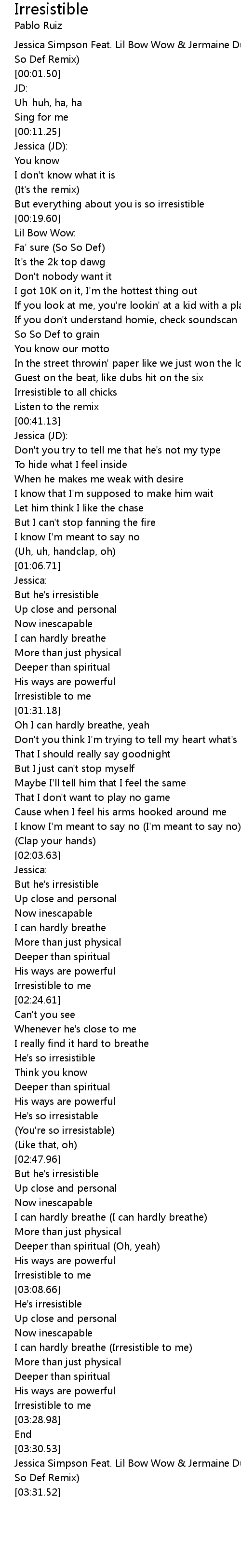 Jessica Simpson Feat. Lil Bow Wow & Jermaine Dupri - Irresistible (So So Def Remix) |