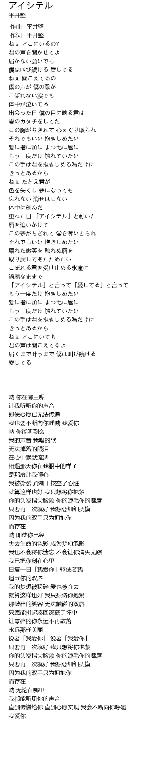| [00:01.00] | 作词 : 平井堅 |