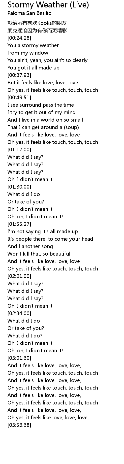 | [00:38.61] | But it feels like love, love, love |