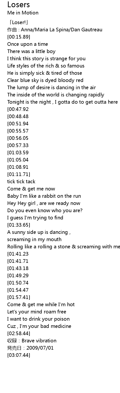 | [02:42.75][01:41.71] | Loser! |