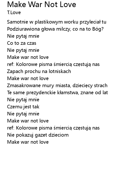 | Song | Make War Not Love |