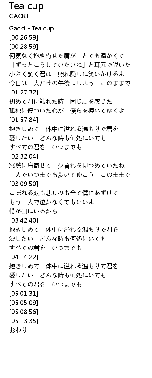 | [00:45.37] | 「ずっとこうしていたいね」と耳元で囁いた |